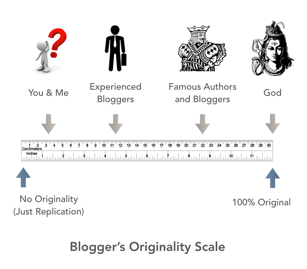 As you start writing as a blogger, initially, you might be low on the scale of originality. Let’s say you publish a blog post today and share it the blog post on your social media profiles. You might get some readers. You might get some comments. A few people would thank you for your efforts.