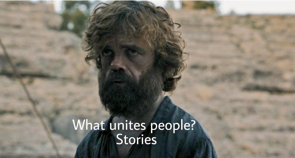 We are humans, because we can tell stories. Without stories, we would have never defeated the Neanderthals and we might not have existed on this planet in the first place, let alone dominate it.