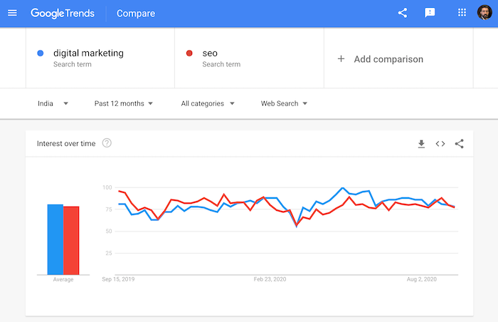 Every business wants to get free traffic. They want to rank for keywords that their customers are searching for. Most of the websites out there are not optimized for search engines and could use the help of an SEO expert to fix their search traffic. SEO is one of the highest in-demand skills according to Google Trends – almost as much as Digital Marketing itself. If you can combine your SEO skills with content skills, you become even more valuable.