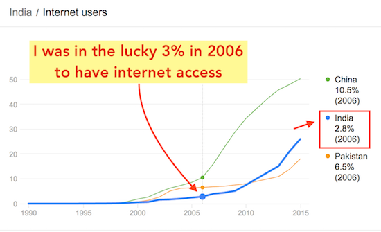 When I had access to broadband internet, it was in the 2nd year of college. I had dial-up access to the internet as early as 2004. Today there are 8x more internet users on the web! (I feel old!)
