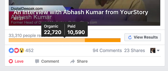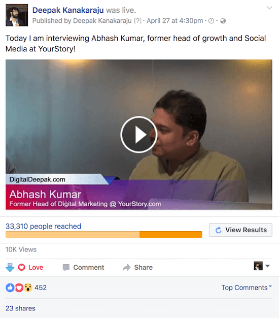 Usually, my recorded videos, posts or photos reach a maximum of 10,000 people organically on my page that has 135,000 likes right now. But this live video has got more than 2x the organic reach.