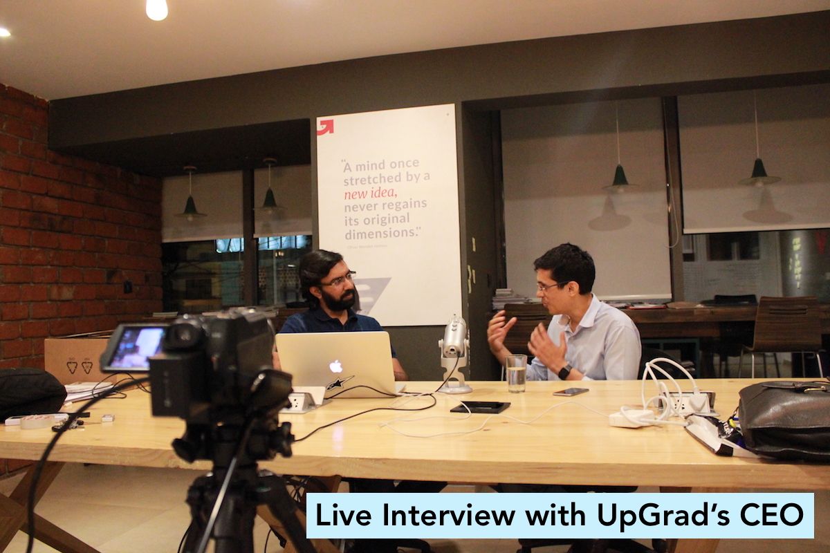 In the above pic, you can see the camera and the mic that I used recently during a live Interview with UpGrad’s CEO. I keep the mic on the desk and feed the audio directly into my computer via USB (digital USB signal is better than an analog one).
