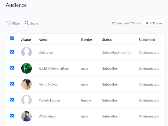 The subscriber’s name is not shown until they interact with one of the messages we’ve sent. This is more like double optin in email subscription. If they do not interact with any of the messages, they’re not counted as a subscriber.