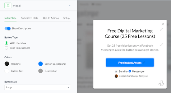 You can see that I’ve added Facebook Messenger subscription for my free digital marketing course instead of email subscription. I am using a popup on the page which asks people to subscribe via messenger instead of asking for email IDs.