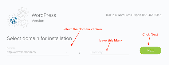 Select the domain on which you want to install the WordPress blog. You will get your domain name by default, you can select that.