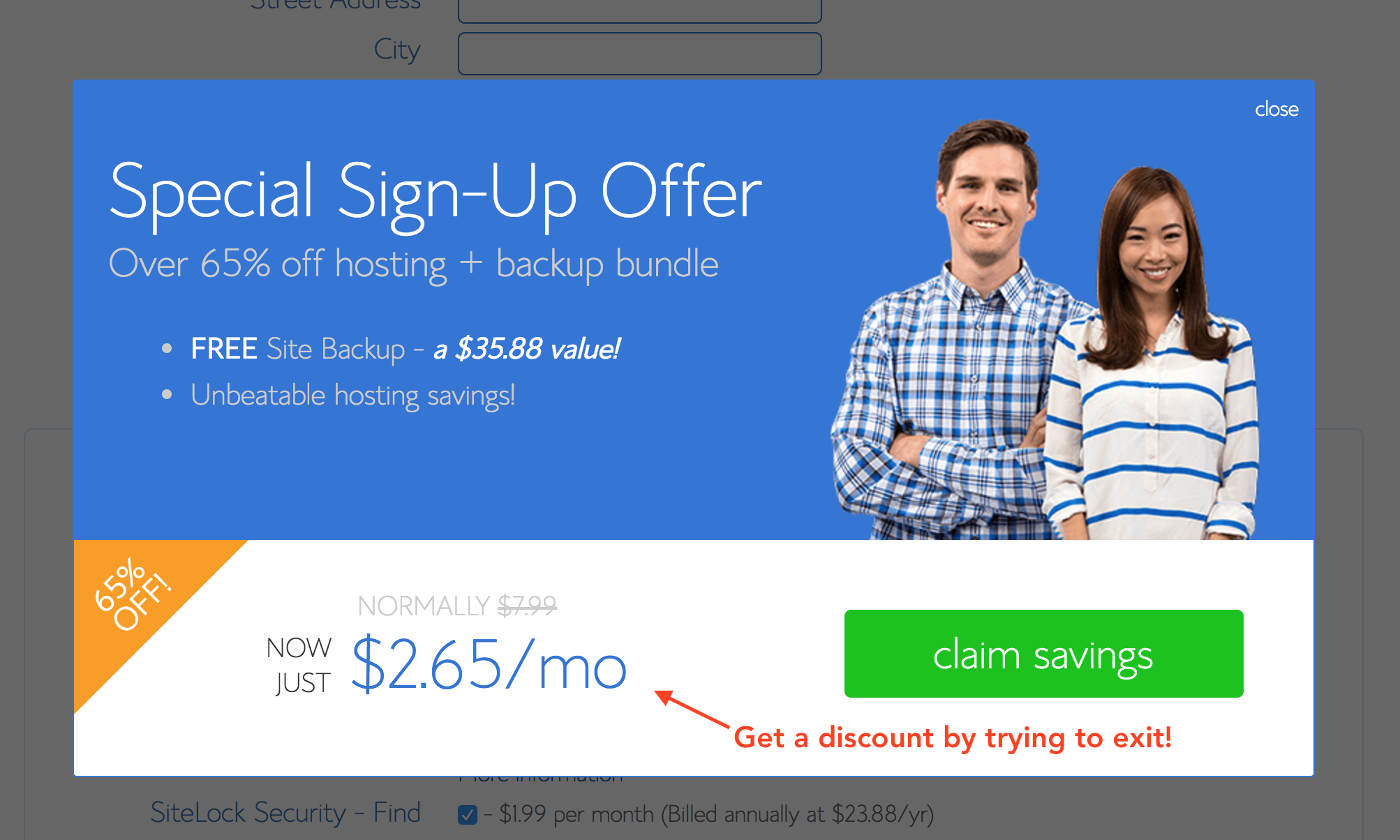 In the next step, you have to enter all your personal details. Move the mouse to the top right corner of the screen. They will think that you are leaving their website and will try to retain you by giving an offer. Do this and click on Claim Savings in the next screen.