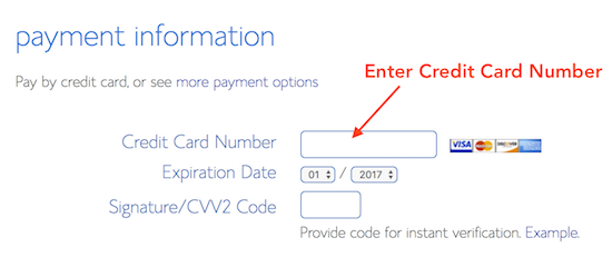 Enter your credit card number in the next step. And then finish the order process. In many cases, a debit card number also works.