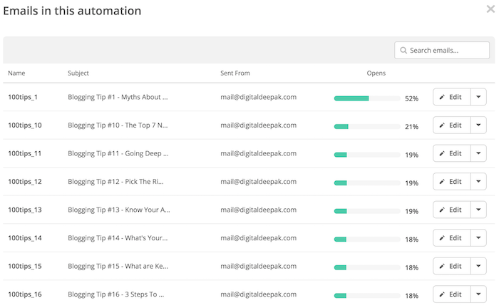 One great example of a well-performing newsletter is my 100-day Blogging Tips newsletter.