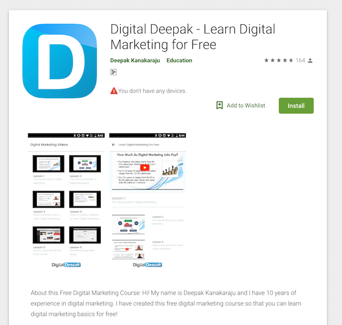 Another free tool that has performed very well as a lead generation tool for me is the Digital Deepak app on the Play Store.