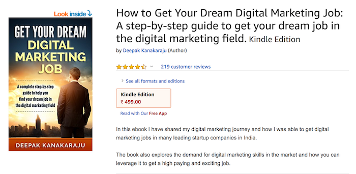 The first ebook that I published was also hosted on Amazon called “How to Get Your Dream Digital Marketing Job.”