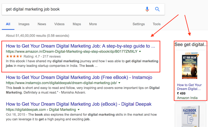 Amazon is also running ads on Google from their ad budget for driving more transactions in their platform, which indirectly helps me get free paid advertising because I have put up the ebook on sale at Amazon.