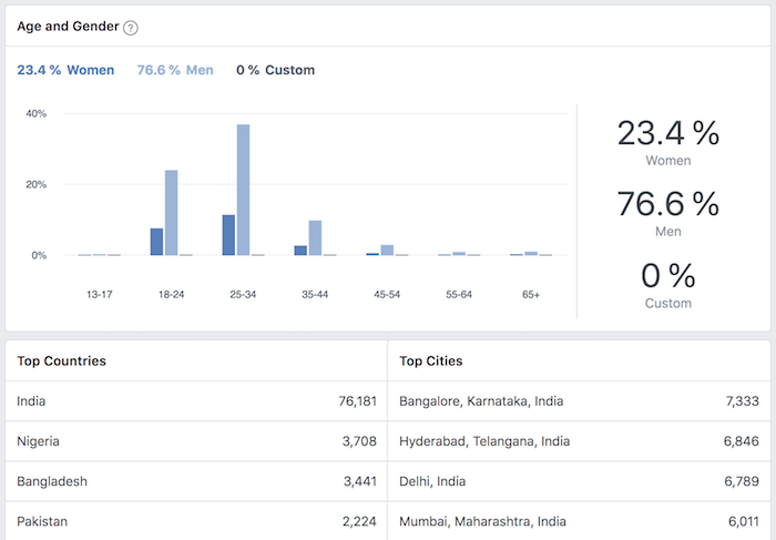 In this group, I’ve India as the top country and Bangalore, Hyderabad, Delhi, and Mumbai as the top cities for the group.