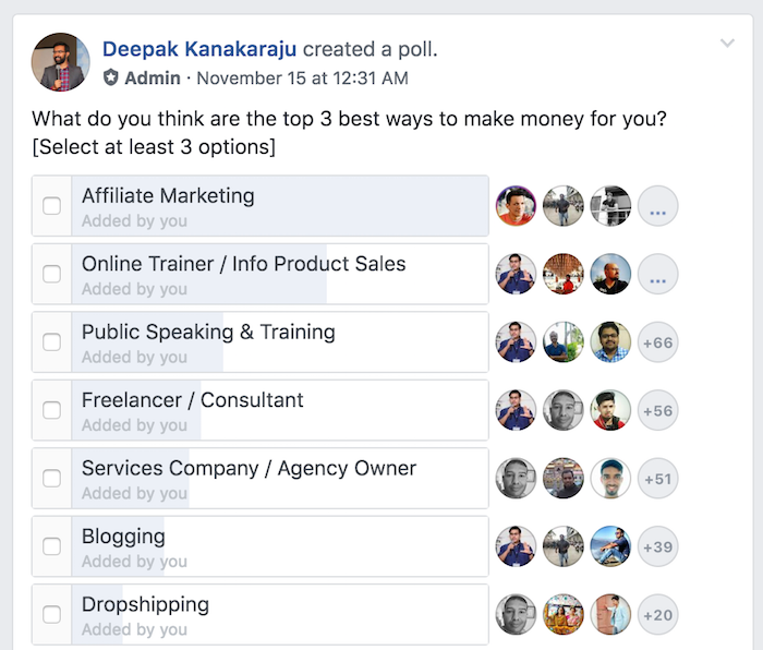 Groups are also a great platform for doing surveys, research, and getting more insights from your audience.