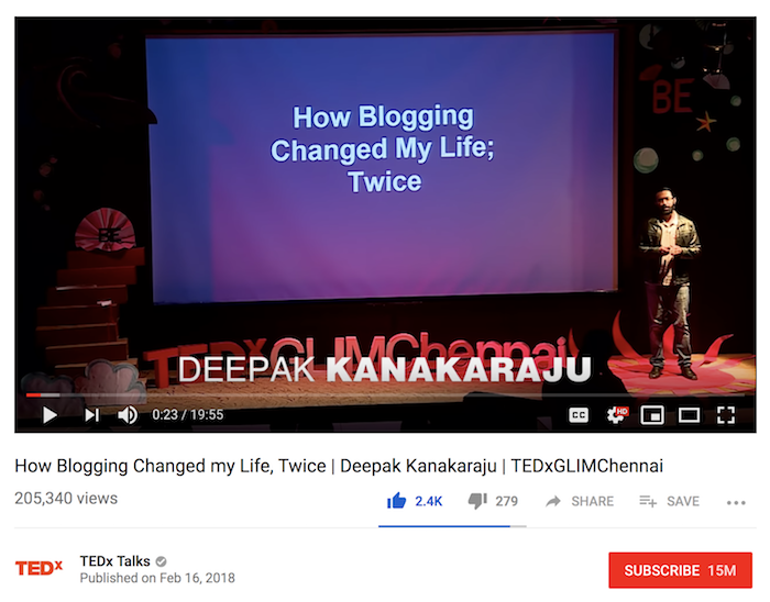 I delivered a TEDx talk at the beginning of 2018 and it has got 200k+ views so far.