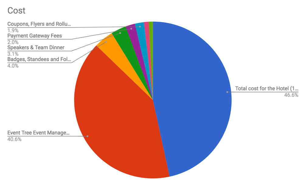 Hotel and the event management that includes setting up the whole event alone cost 87%. And hotel is 46.6% of the cost. If we had got a cheaper venue, we still would have paid around ₹50,000 for the event space and then there would not be any food covered in it.