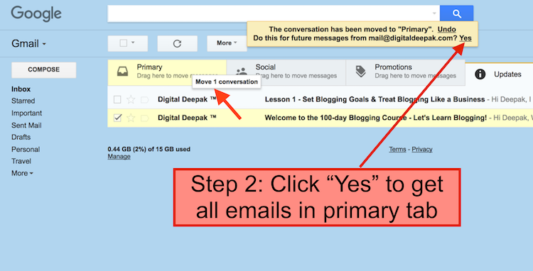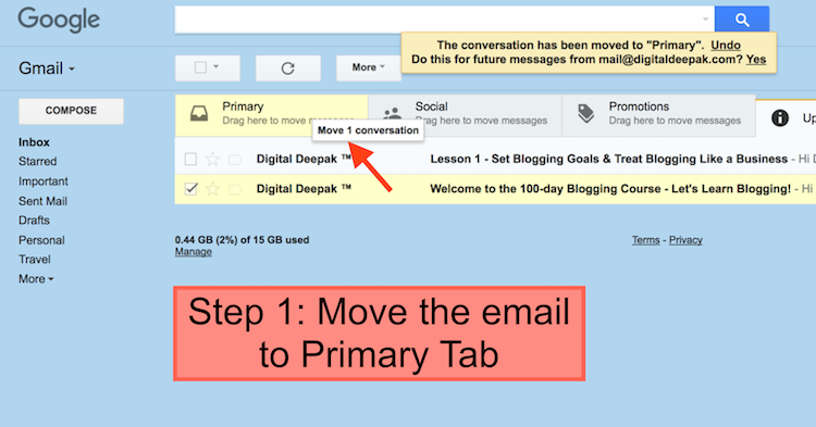 3. Ask People to “Drag” Emails into Primary Tab