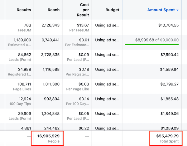 I have spent exactly $55,479.03 in the past 3+ years of on Facebook Ads.