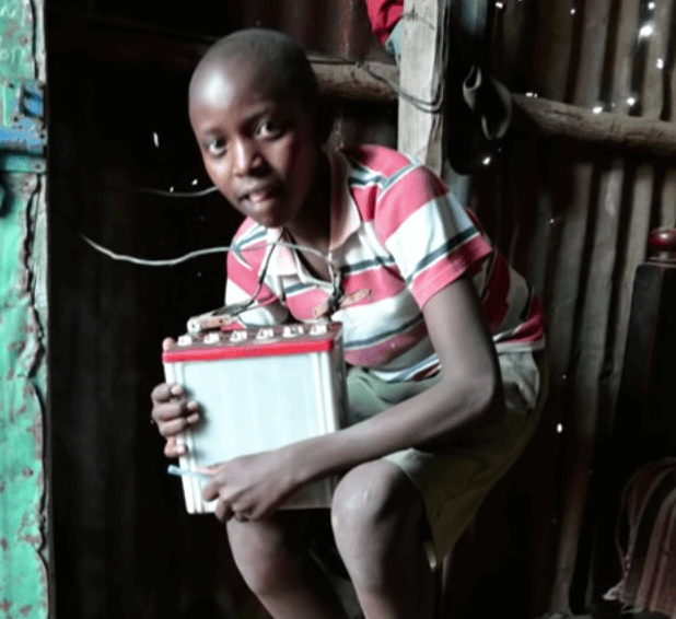 So he took a car battery, his mom’s radio and a electronic unit from a motorcycle which helps with switching indicators on and off. (His Mom was very upset at him for breaking apart a new radio!)