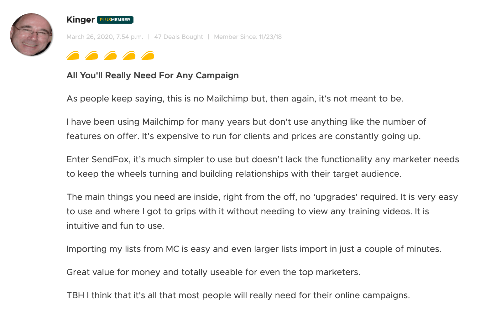 Other tools cost around $80 to $100 a month for 5k subscribers. With SendFox you are getting 5k subscribers for life, unlimited. You will not find a deal like this again.