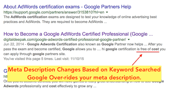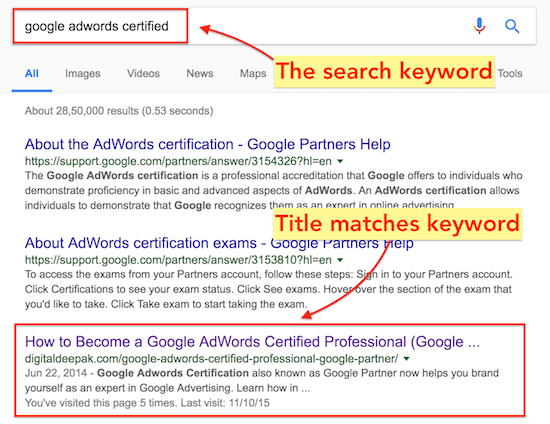 In the above screenshot you can see that if someone is searching for “Google AdWords Certified”, my blog is showing up with a similar title.