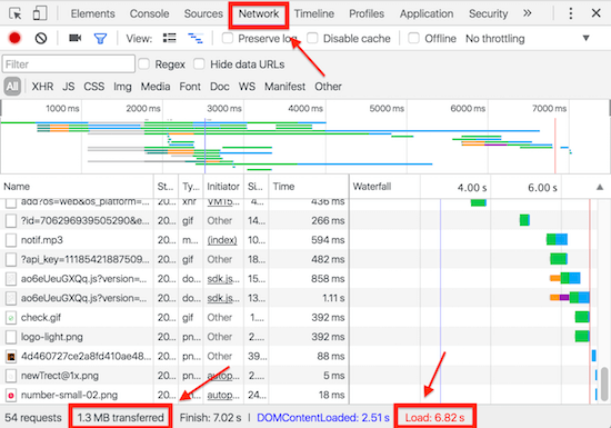 You can see that this very page is 1.3MB in size and loads in 6.82 seconds. This varies based on the speed of your internet connection as well, so this load time is not the same for everyone. You can also sort the elements on your web page to determine which elements are the heaviest.
