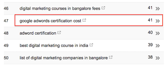 Here’s one example from my search console. 41 visitors have come in the past 30 days with the keyword ‘Google AdWords Certification Cost’.