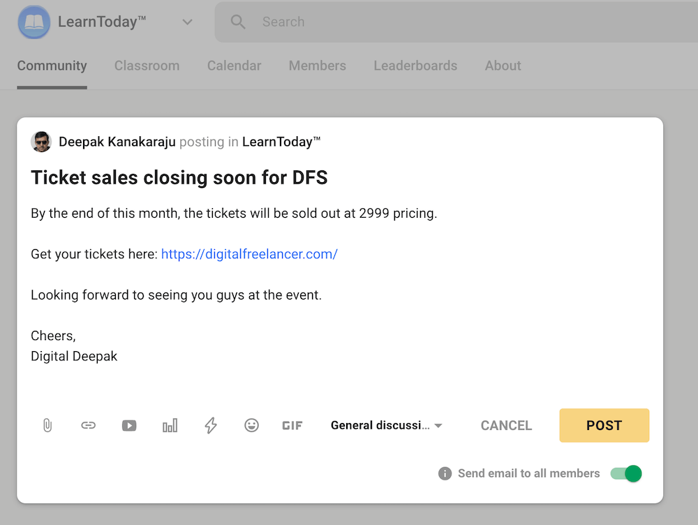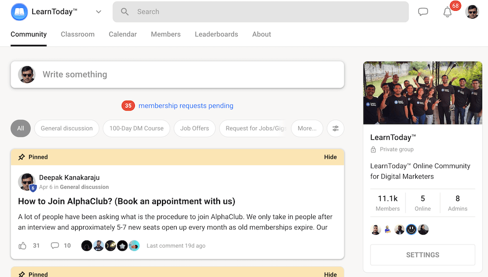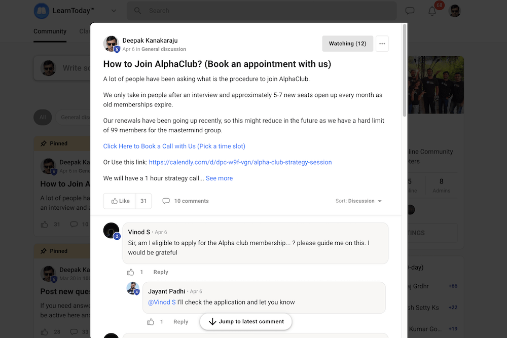 I was always on the lookout for a platform that can integrate everything. The learning management system, the community, and the event calendar. I was wishing that someone would build such a tool and I was also dreaming of building such a tool myself when I had the resources.
