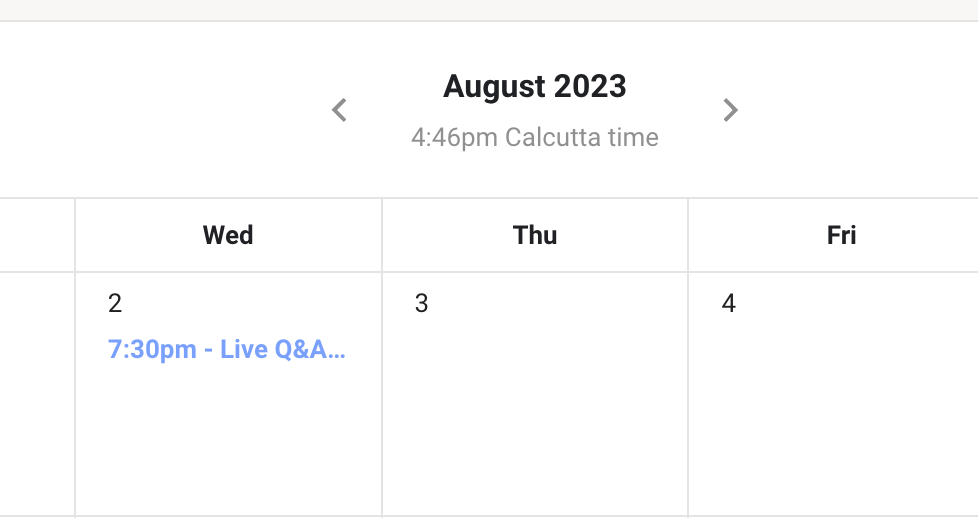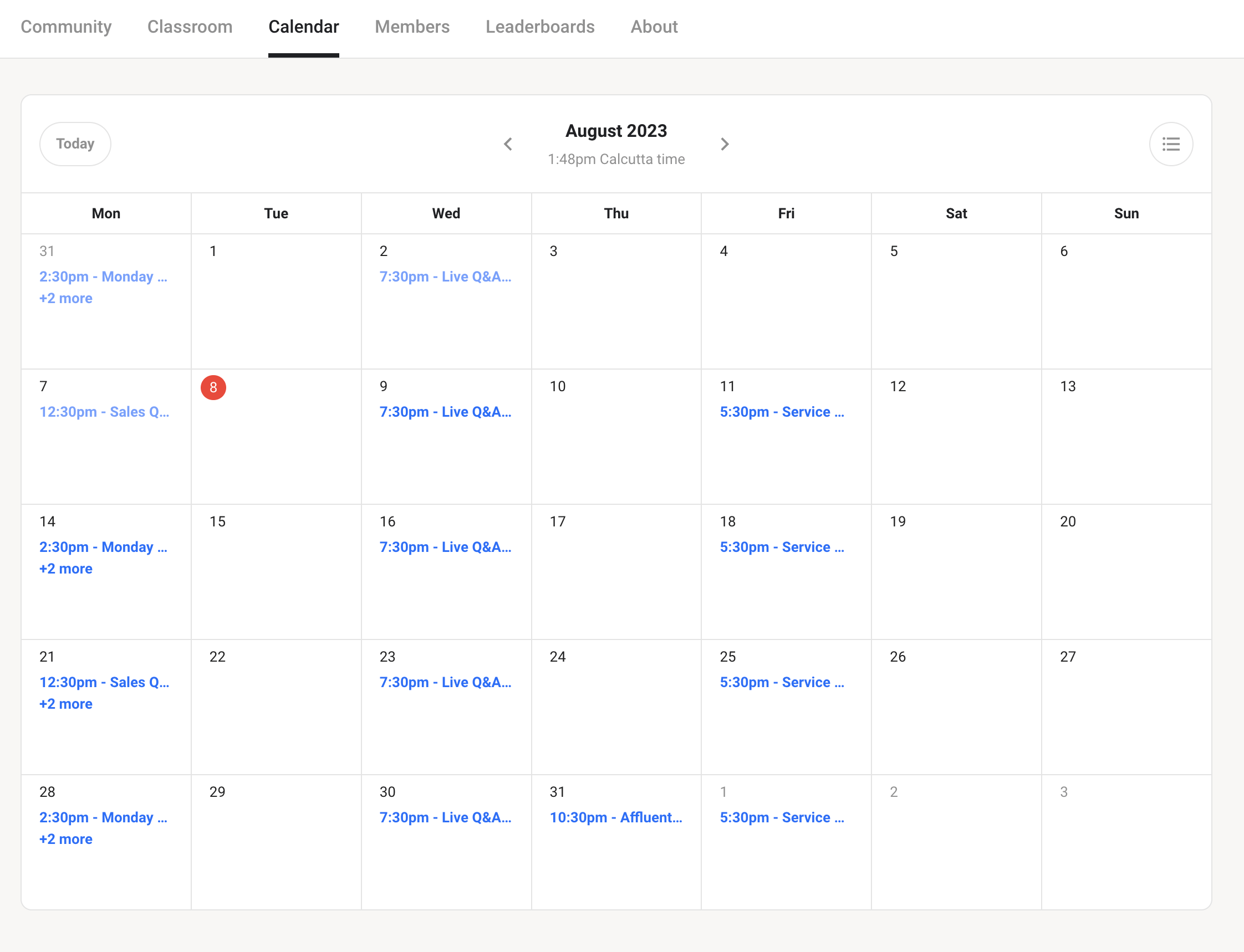 The best part about the calendar is that Skool automatically finds out the time zone you are in based on your profile and adjusts the times accordingly.