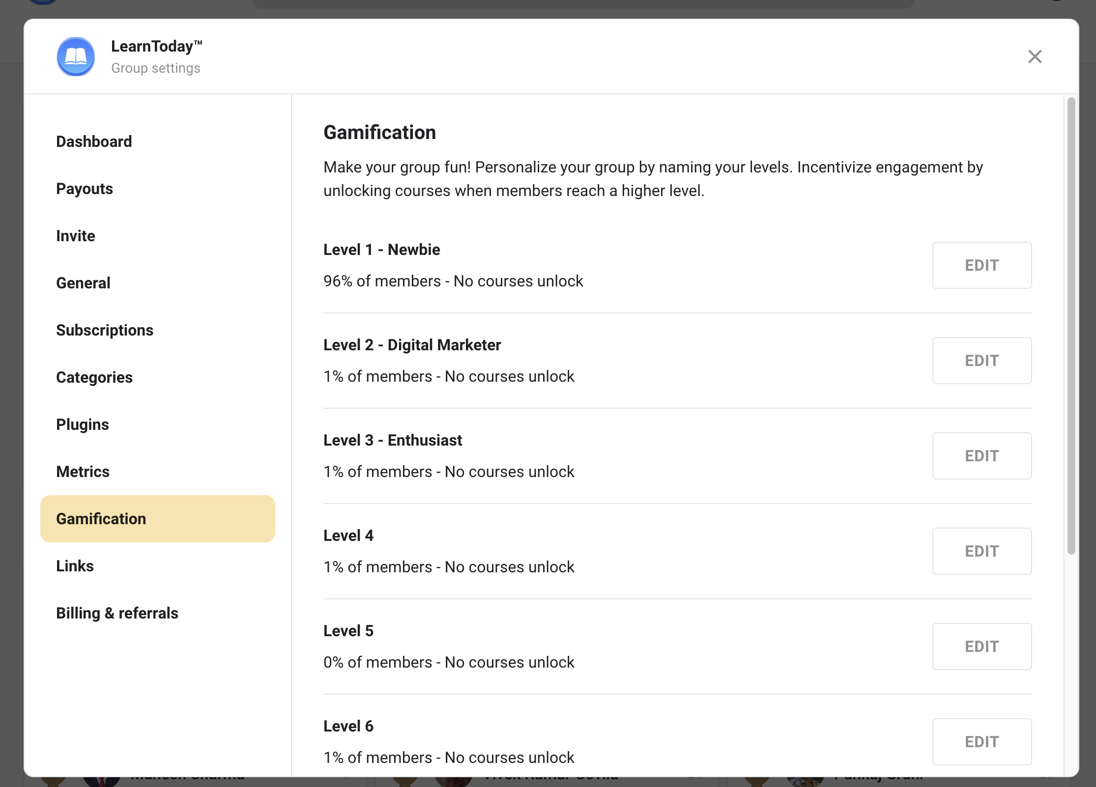 You can unlock courses for members who reach certain levels. This can be edited from the settings menu.