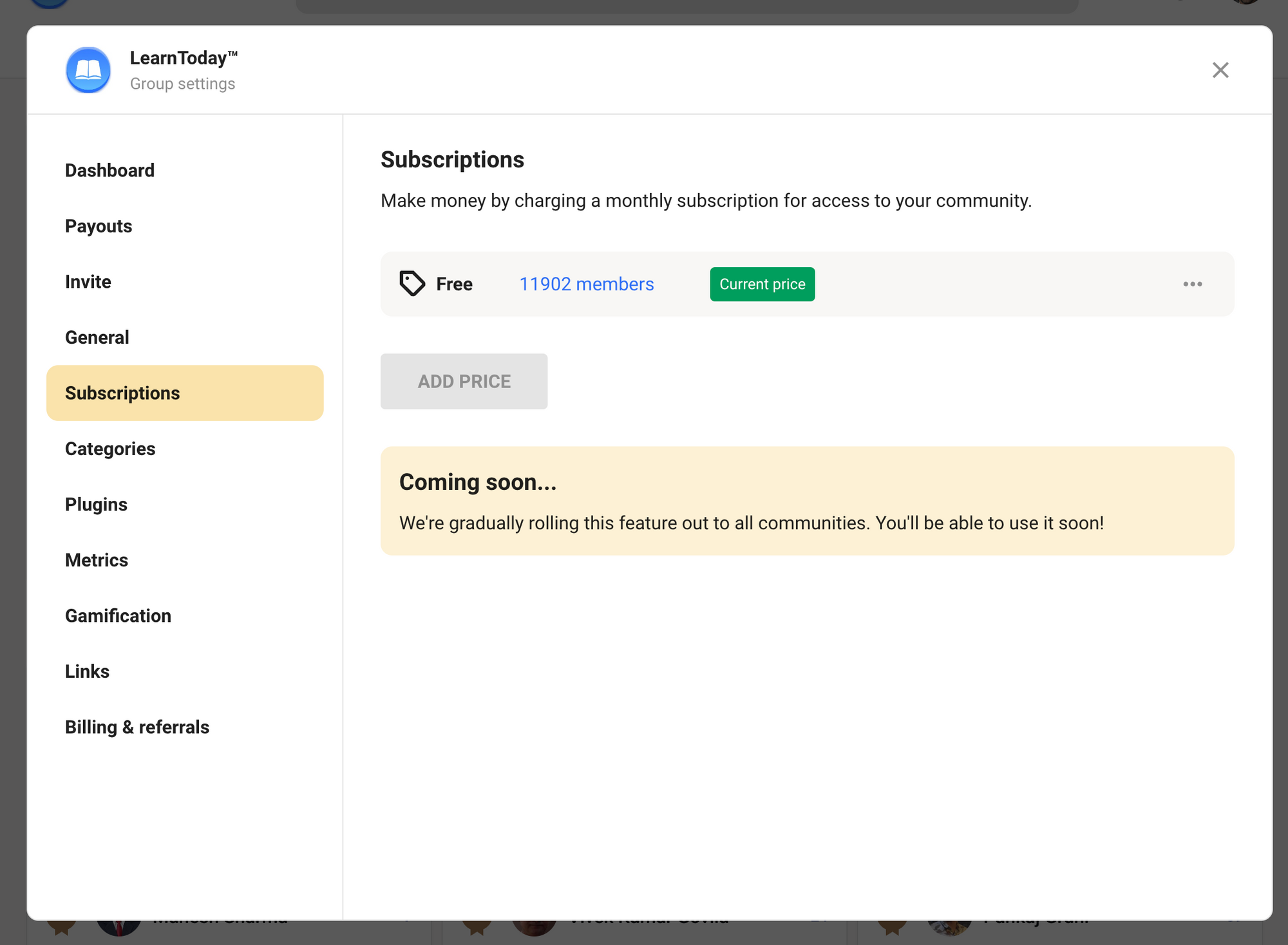 This feature helps you charge members for access to your community. This feature is in Beta right now and will be rolled out to all the members soon.