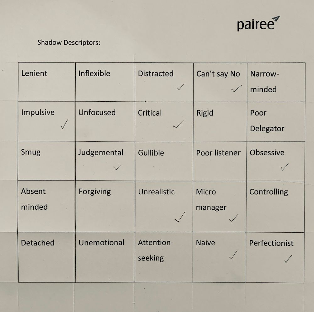 The basic idea behind this workshop’s theme is that every leader has certain strengths and certain weaknesses (shadows). Many times, leaders make the mistake of hiring people who are like them, rather than hiring people who are complimentary to their strengths.