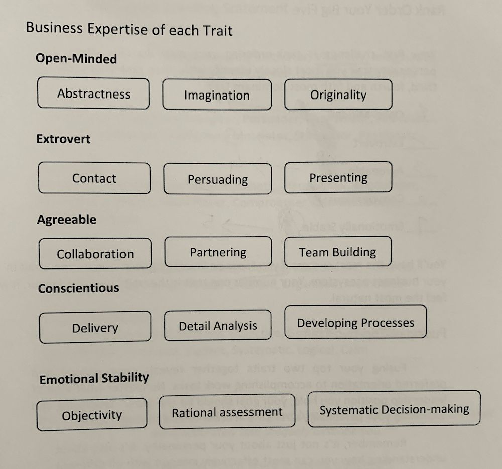Here’s a list of business expertise of each trait. A business needs leaders that can cover all these skills to make it a great and profitable organization.