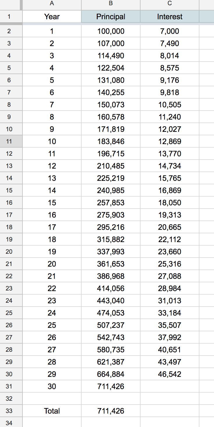 And that is by re-investing the interest that you earn every year back into the principal so that you can start earning interest on interest.