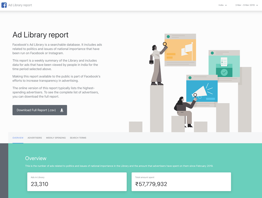 According to Facebook’s Ad Library Report, there were 50,000+ political ads with a total spending of more than 10 crores INR between February and March 30 this year, with a major chunk coming in from BJP and its supporters.