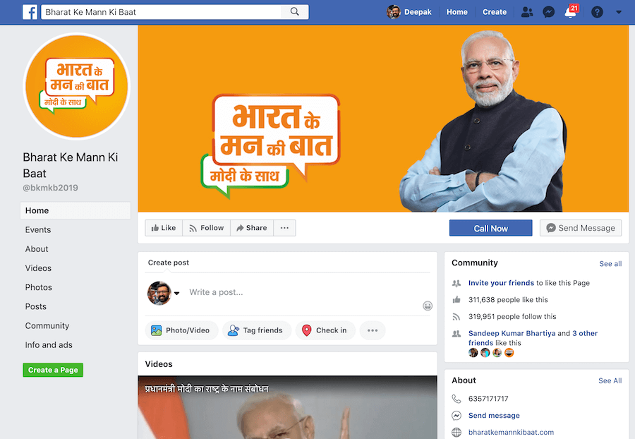 Created recently in January 2019, this page is all about making the people of India feel empowered. It maybe regarded as an online version of the radio show ‘Mann Ki Baat’.