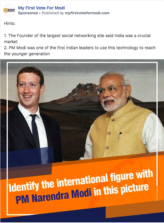 As a part of one of their contests, the questions ranged from identifying the person in the picture with Modi. These individuals ranged from prominent and popular heads of states to entrepreneurial icons like Marc Zuckerberg of Facebook, Sundar Pichai of Google, and Bill Gates of Microsoft with an immense following count.