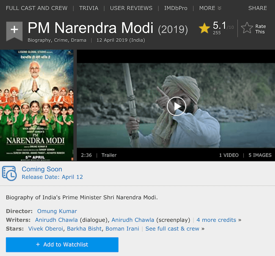 With a biopic “PM Narendra Modi” scheduled for release, just one week before the elections, there are of course a lot of speculations raised whether it has been a tactical move by BJP to increase their popularity and influence the voting outcomes. While the BJP has denied association with the movie production, it is an area of doubt for many.