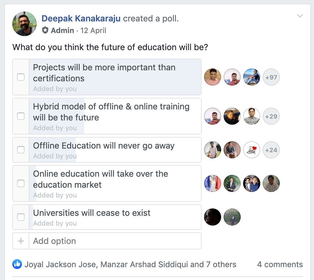 One of the questions I asked my audience of 125,000+ members on the Facebook Group was – what do you think the future of the education will be?