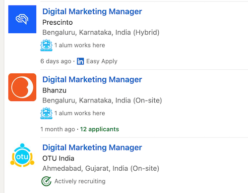 Here are some examples of active digital marketing manager job openings in India.