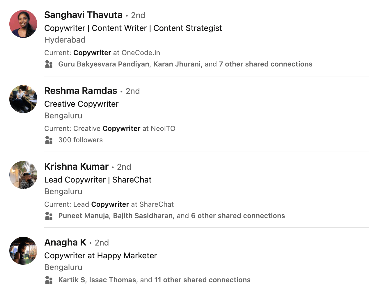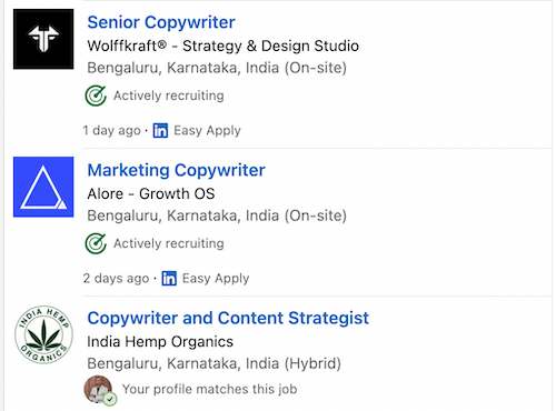 Here are some examples of job listings on LinkedIn for the position of copywriter.