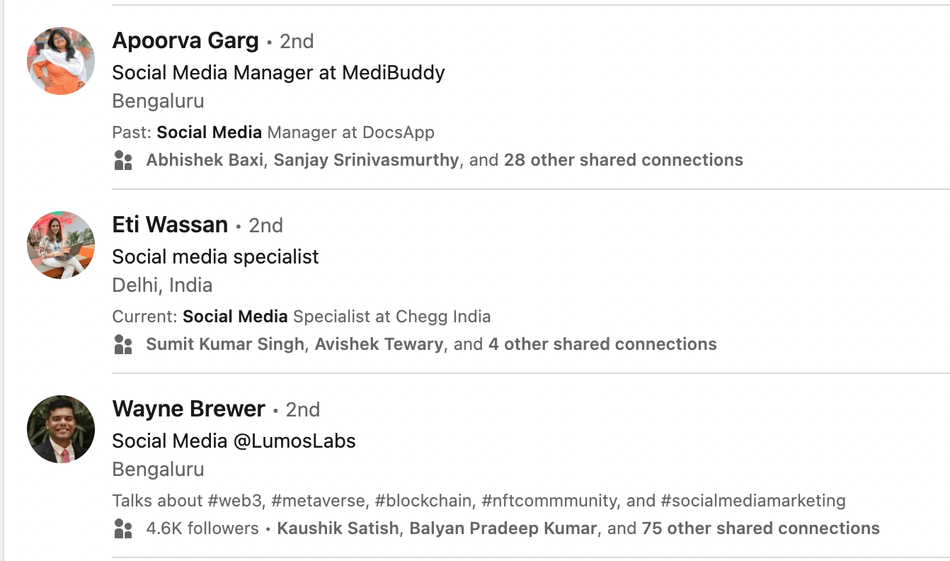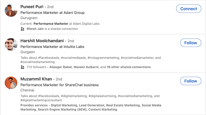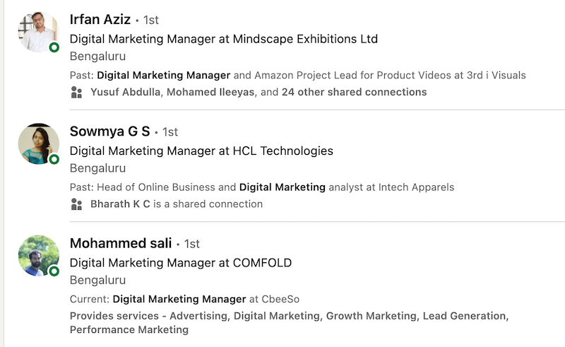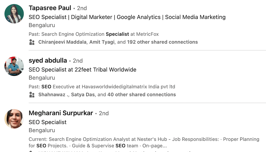 And here are some profiles from LinkedIn search who are working as SEO experts.