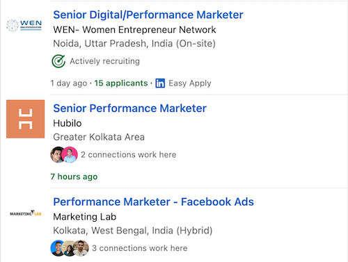 Here are some examples of performance marketer requirements on LinkedIn Jobs