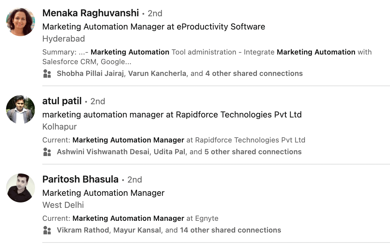 Here are some examples of profiles on LinkedIn who are working as marketing automation managers:
