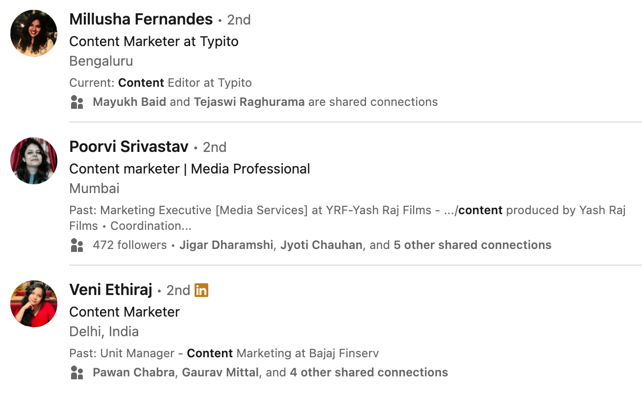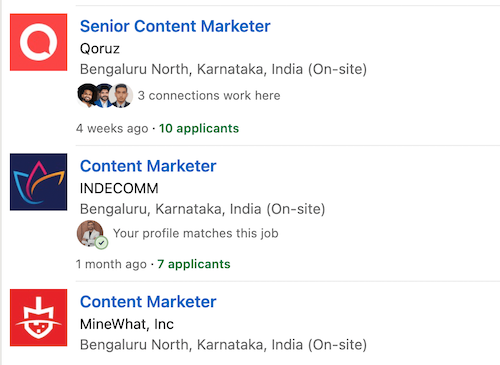 Here are some examples of job openings for content marketers on LinkedIn
