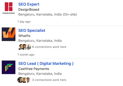 Here are some job postings for SEO experts as seen on LinkedIn: