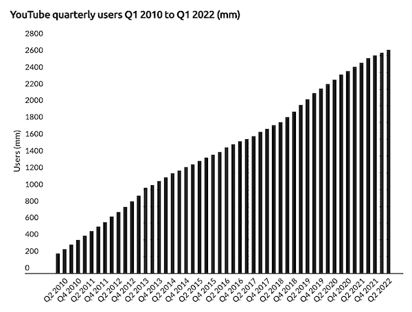Just have a look at YouTube's growth. It doesn't seem to slow down. And if this pace of growth continues, the new users who come into digital devices will abandon traditional forms of content consumption.